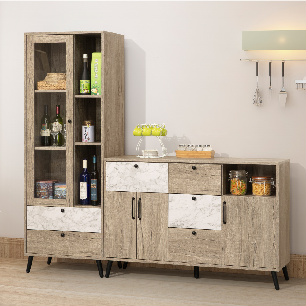 【Homelike】喜家居餐廳二件組(2尺玻璃櫃+4尺餐櫃)(2209)