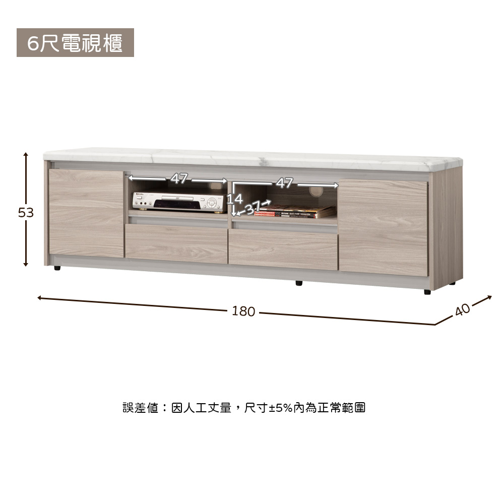 ◆電視櫃+高櫃+茶几 客廳一次購◆無把手設計,採用隱藏式U型凹槽◆仿白雲杉石紋檯面 質感提升◆免組裝,由專人宅配到府◆雪杉簡約、現代風格◆電視櫃,二抽屜+開收格◆高櫃,五層收納空間◆茶几,可雙面使用整組商品:6尺電視櫃+高櫃+茶几電視櫃尺寸:寬 180 x 深 40 x 高 53 公分茶几尺寸:寬 120 x 深 60 x 高 53 公分高櫃尺寸:寬 80 x 深 40 x 高 190 公分材質:MDF仿石紋(玻璃漆塗料)、高級木心板顏色:雪杉色產地:台灣誤差值:因人工丈量,尺寸±5%內為正常範圍