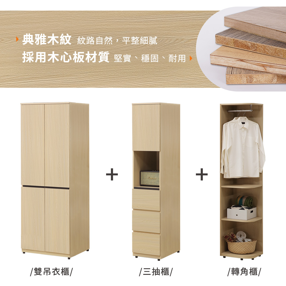 【Homelike】喜家居5尺轉角三抽組合衣櫃(2501)
