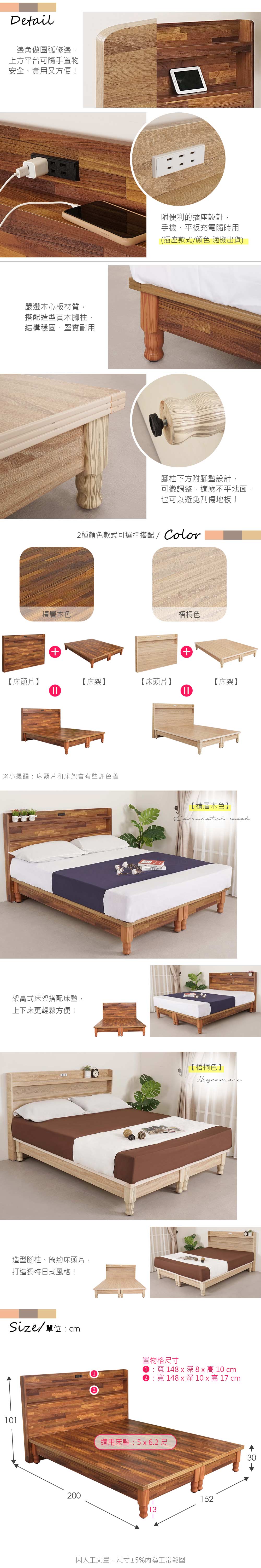 【Homelike】喜家居雙人5尺附插座床架組(積層木)(2156)