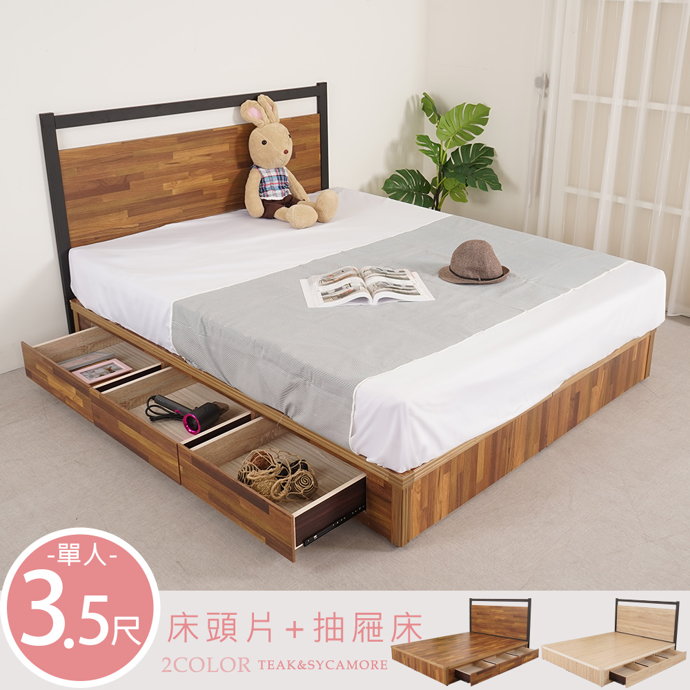 【Homelike】喜家居單人3.5尺三抽屜床組(積層木)(2228)