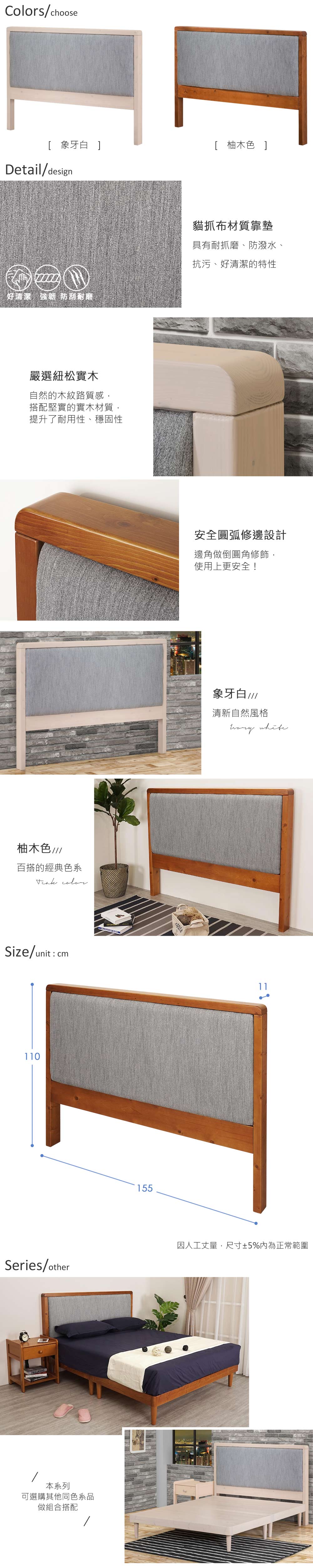 【Homelike】喜家居雙人5尺貓抓布實木床頭片-象木白(2028)