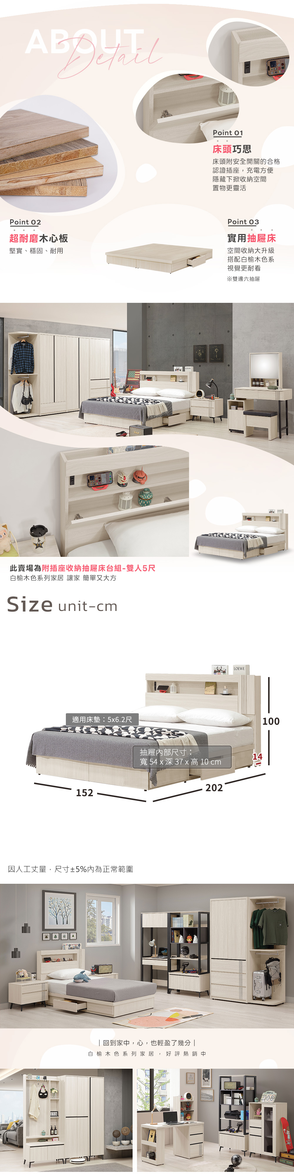 【Homelike】 喜家居附插座收納六抽屜床台組-雙人5尺(2542)
