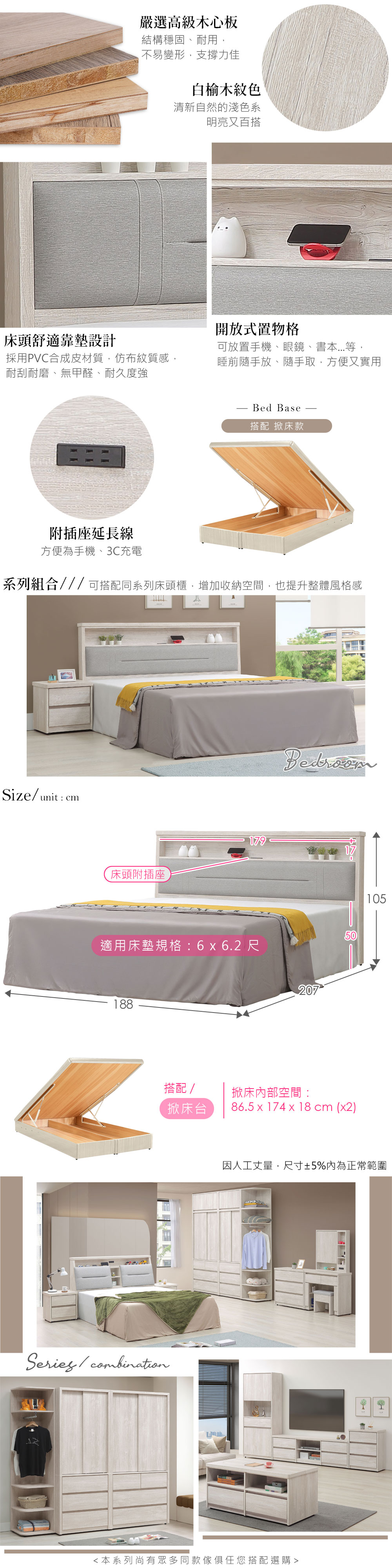 【Homelike】喜家居雙人加大6尺床片掀床組-附插座(2541)
