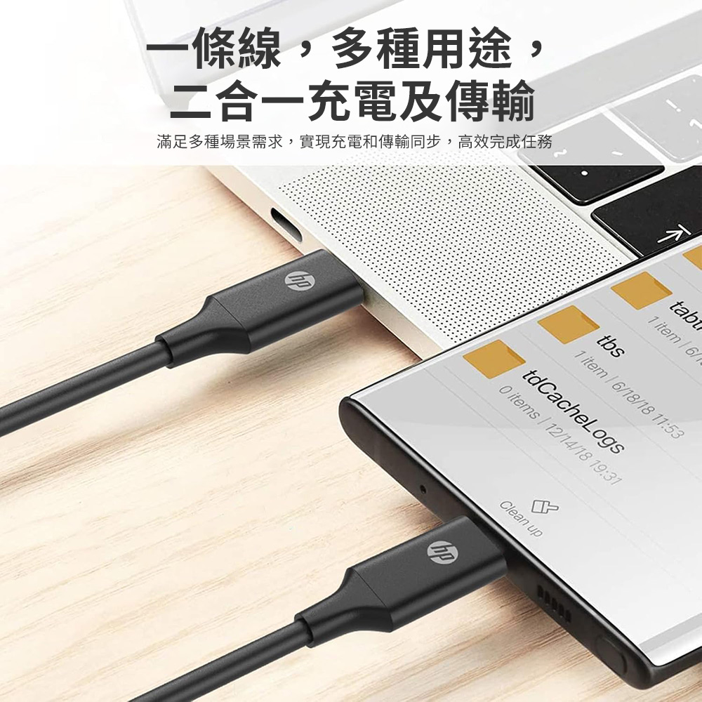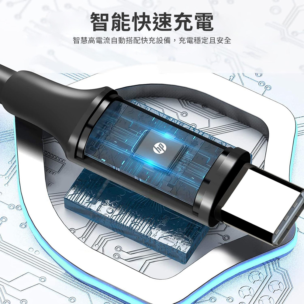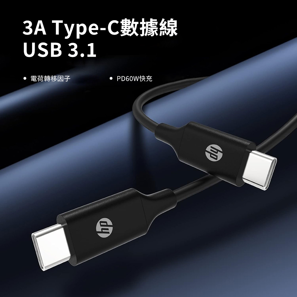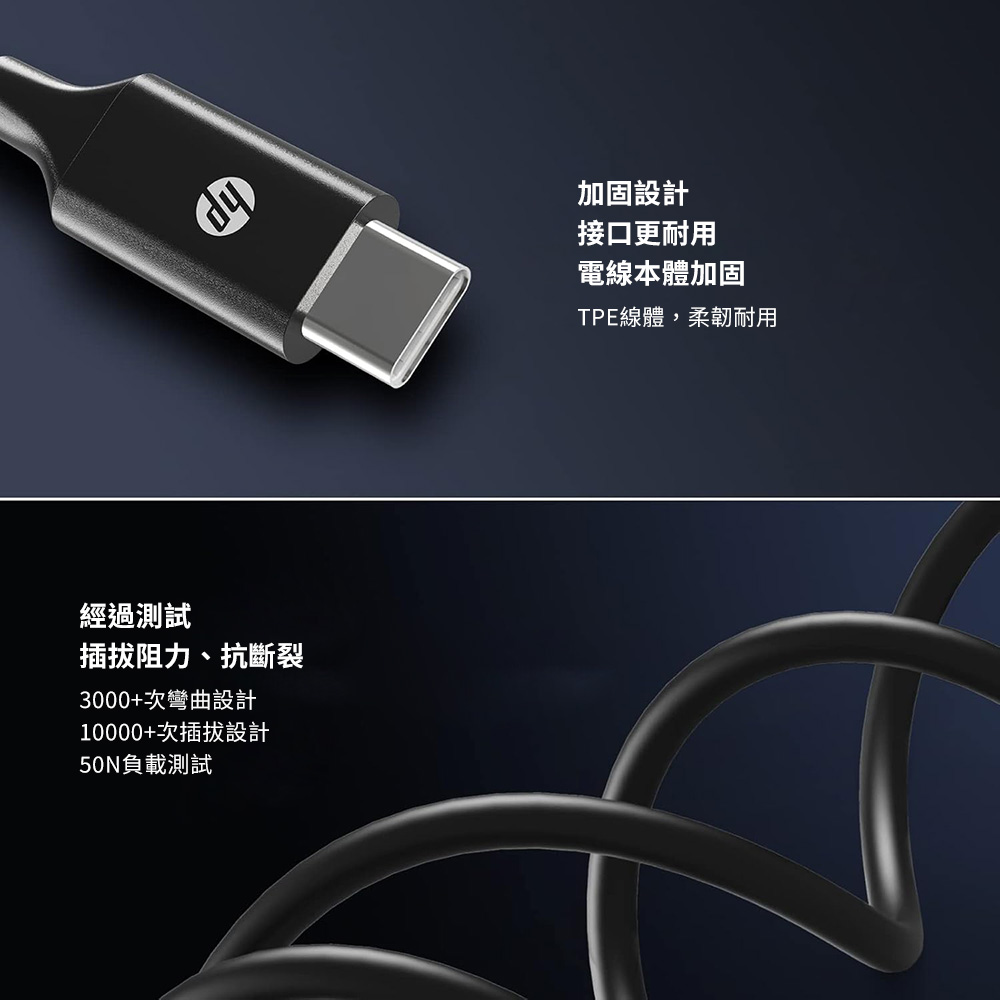 【HP 惠普】HP DHC-TC107 Type-C充電線 速充快充線-黑色(2m)
