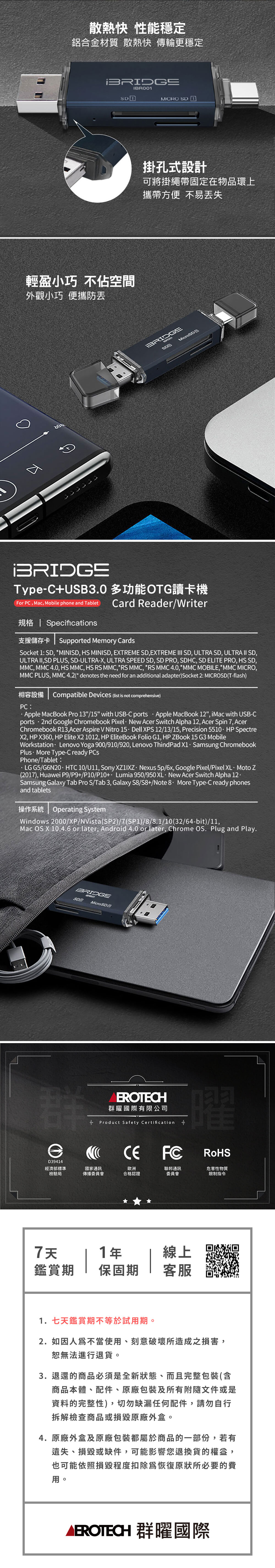 iBRIDGE Type-c+USB3.0多功能OTG讀卡機