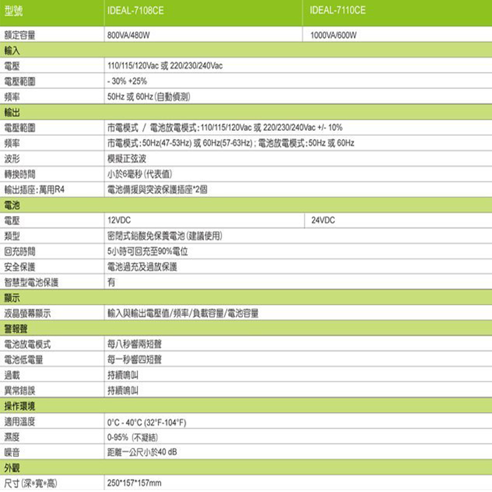 昌運監視器 IDEAL愛迪歐 IDEAL-7110CE 在線互動式 1KVA 110V UPS 不斷電系統
