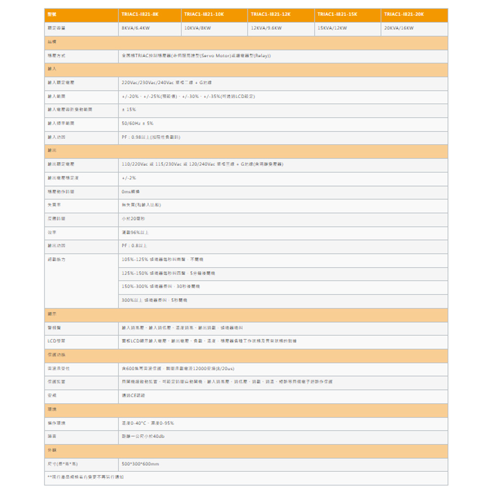 -使用TRIAC元器件作電壓調整,全低頻設計,無電磁干擾