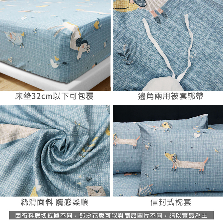雙人5尺-床包x1件(152x188cm)、薄枕套x2個(48x75cm)、兩用被x1件(182x212cm)