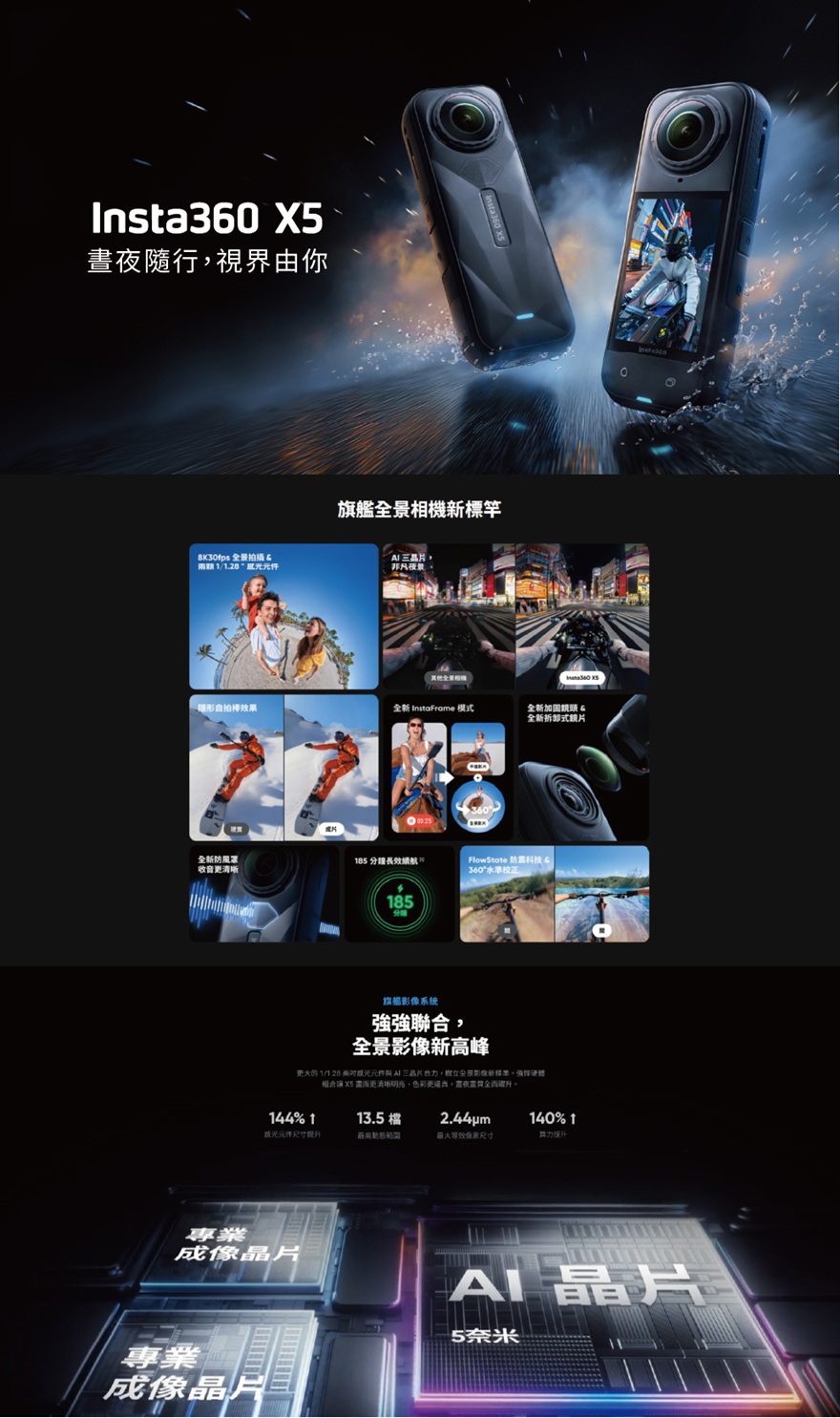 【Insta360】 X5 旗艦 8K全景運動相機 福利品9成新展示機 東城代理公司貨