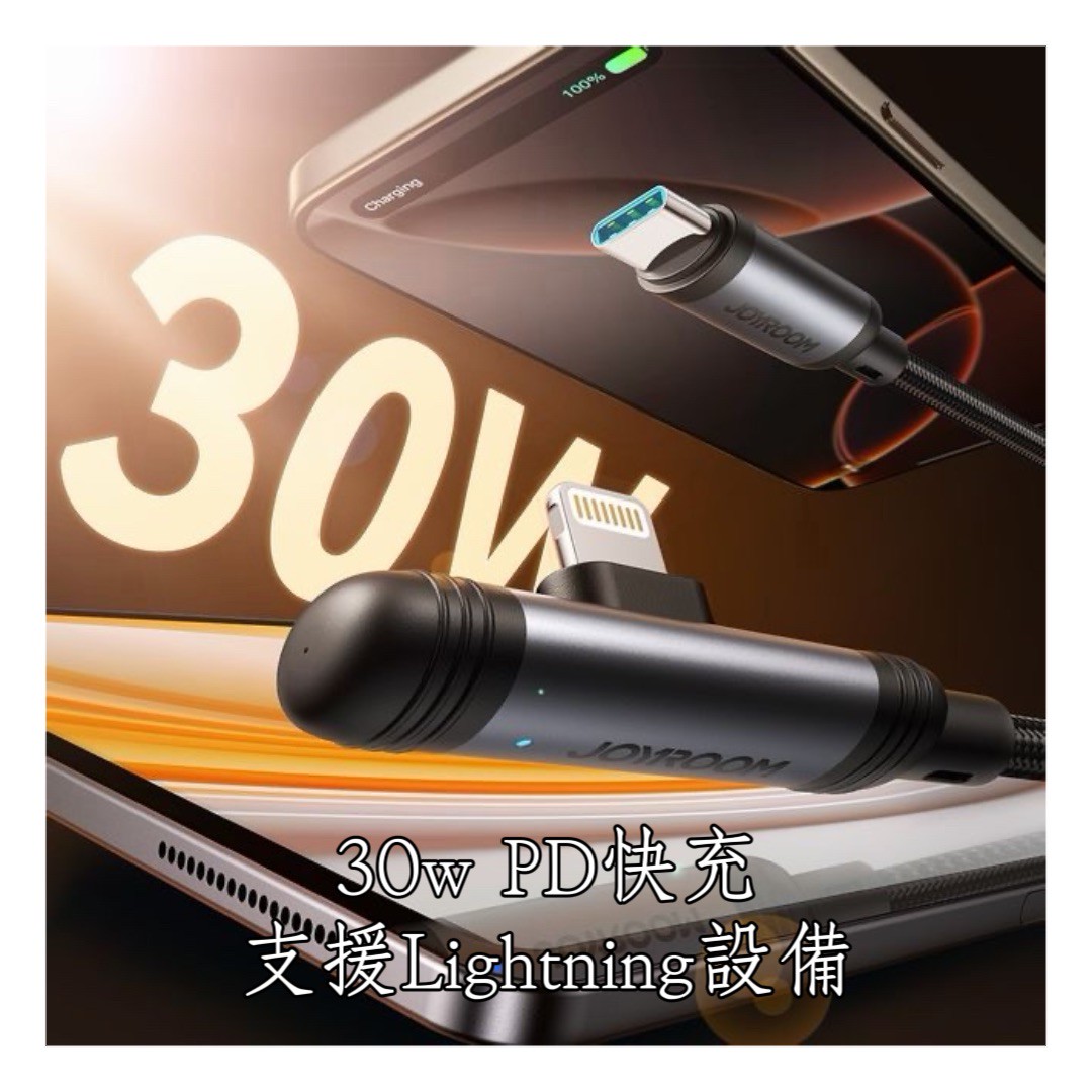 【山水之寶】TYPE-C to Lightning 30W暢享彎頭快充線 120cm