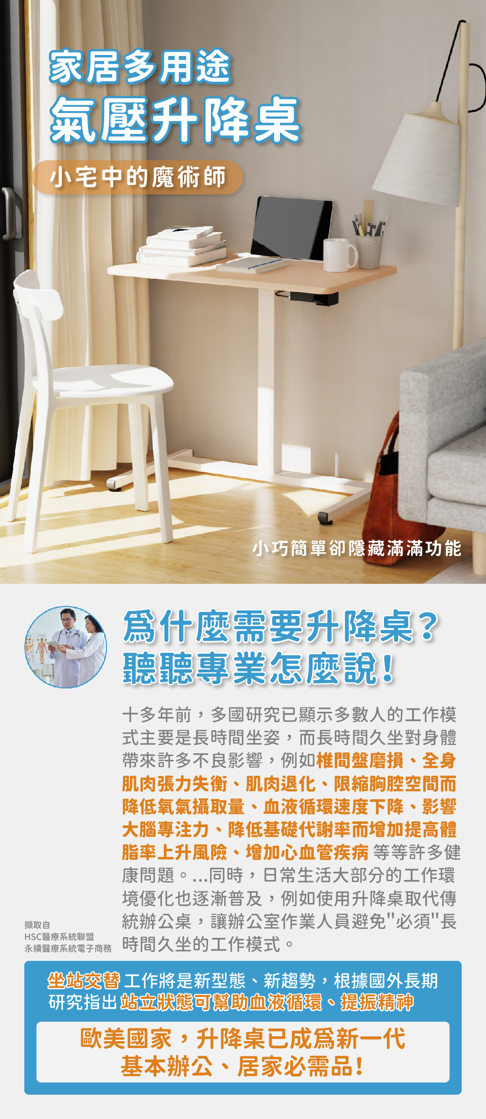 【KAKU健康生活】KA-4814 臺灣製造[好升氣][高桌]氣壓升降桌 多色可選