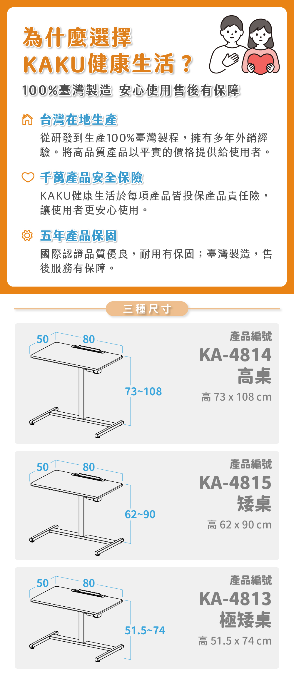 【KAKU健康生活】KA-4815 臺灣製造[好升氣][矮桌]氣壓升降桌 多色可選