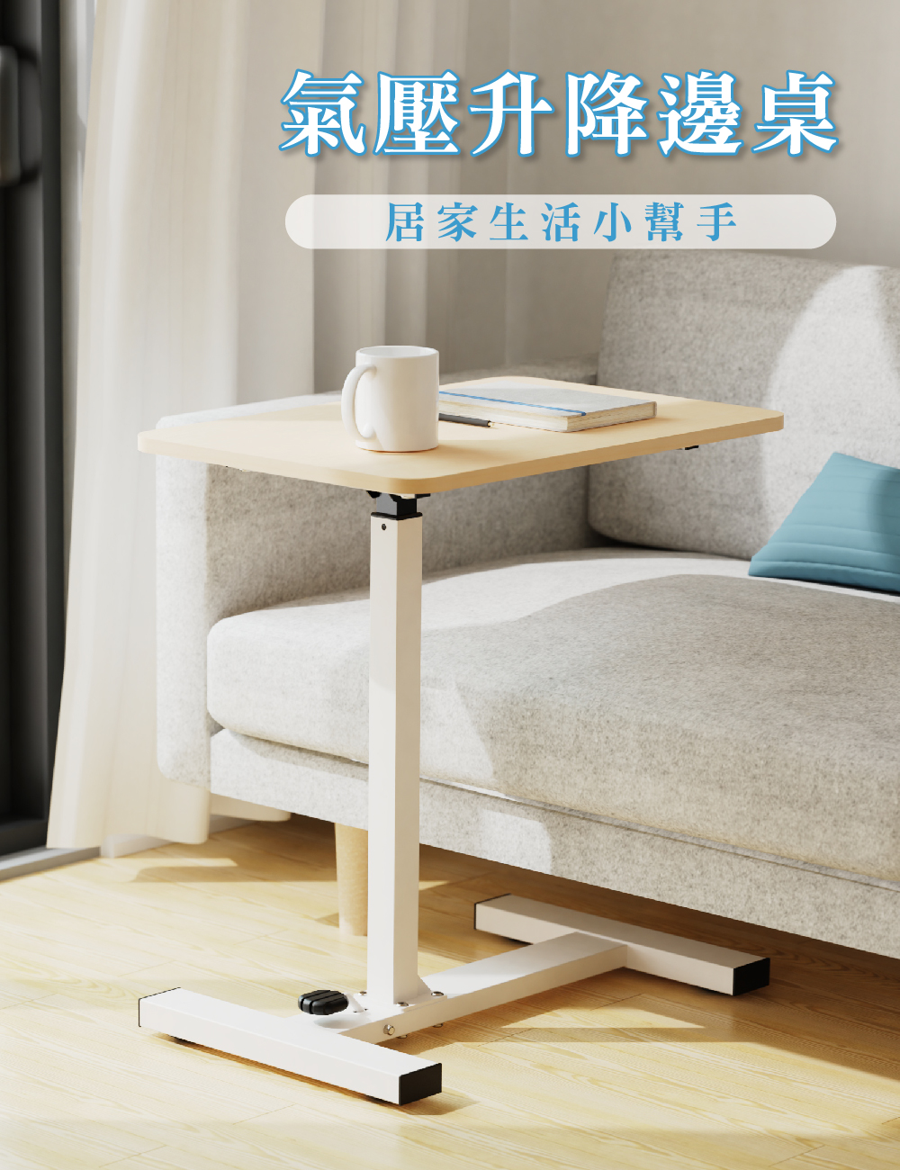【KAKU健康生活】KA-4816 臺灣製造[小氣壓]氣壓升降邊桌 多色可選