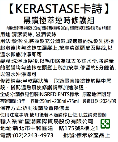◎品牌:KERASTASE 卡詩 ◎規格: 1Set組 x 1 x 1SET組