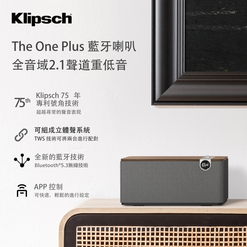 精緻設計,輕奢金屬觸感 支援真無線立體聲 TWS 技術,可輕鬆串聯兩台設備 最新藍牙® 5.3 技術,提供穩定無線連接 USB-C 連接,方便連接您喜愛的裝置 支援 Klipsch Connect APP 控制,提升使用體驗 專為滿足您的生活方式而打造 音效性能: 全頻驅動器重低音:4.5 吋 低音揚聲器雙對置 4.5 吋被動輻射器 外殼類型:低音反射 輸入接口: 藍牙® 5.3 3.5 毫米迷你插頭(類比) USB-C 顏色:Walnut木紋色 最大聲學輸出:103dB 高頻驅動器:2.25 吋 全頻驅動器重低音:4.5 吋 低音揚聲器雙對置 4.5 吋被動輻射器 外殼類型:低音反射功率:60W 頻率響應:55Hz -20kHz 輸入:藍牙® 5.3、3.5 毫米迷你插頭(類比)、USB-C 尺寸(寬x高x深):31.8 公分x15.5 公分x15.2 公分 重量: 3.6 公斤 型號 : KLIPSCH THE ONE PLUS 藍牙喇叭NCC許可字號 : CCAH23LP7811T2=====================================================================※ 退貨需知/注意事項:若您收到的商品有新品瑕疵、故障或其他問題,歡迎聯繫客服進行洽詢和處理。我們的客服將盡快為您解決問題。請注意,網購的猶豫期與試用期是不同的概念。我們的退貨政策要求退貨商品必須是未經拆封和使用過的,除非商品在新品狀態下存在不良問題。若您已超過鑑賞期、拆封使用、或商品包裝已經損壞等情況,超過檢查必要範圍,導致缺乏包裝完整性,我們將無法接受該商品的退貨申請。請注意,原廠外盒和原廠包裝都是商品的一部分,所以如果遺失、毀損或缺件,將會影響您的退貨權益。請確保在退貨時將商品及其相關原廠配件和包裝一同歸還。如果您需要退貨或有其他相關問題,請與我們的客服聯繫,我們將竭誠為您提供協助