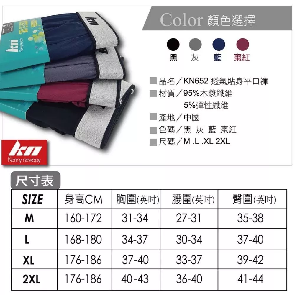 【KN】吸濕抗菌無痕男四角內褲KN652-藍3L