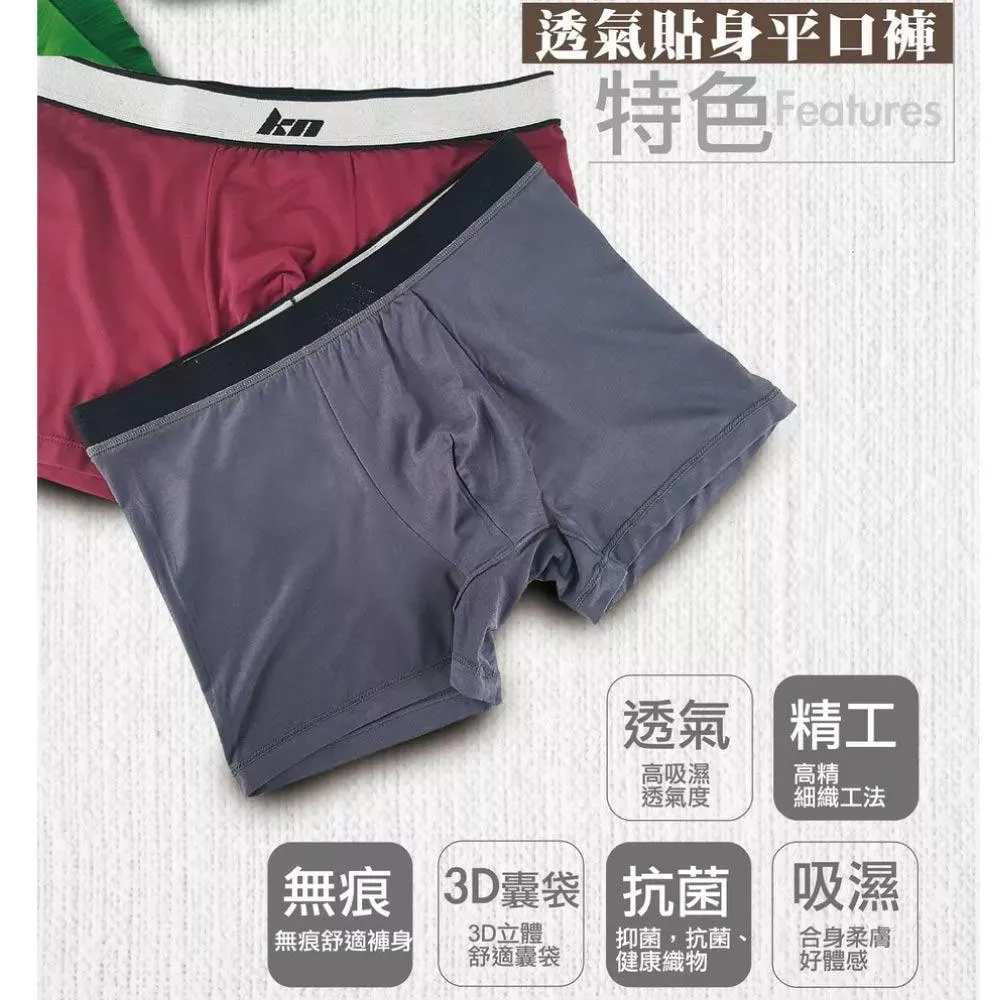 側身無痕.排汗抗菌機能男平口立體剪裁