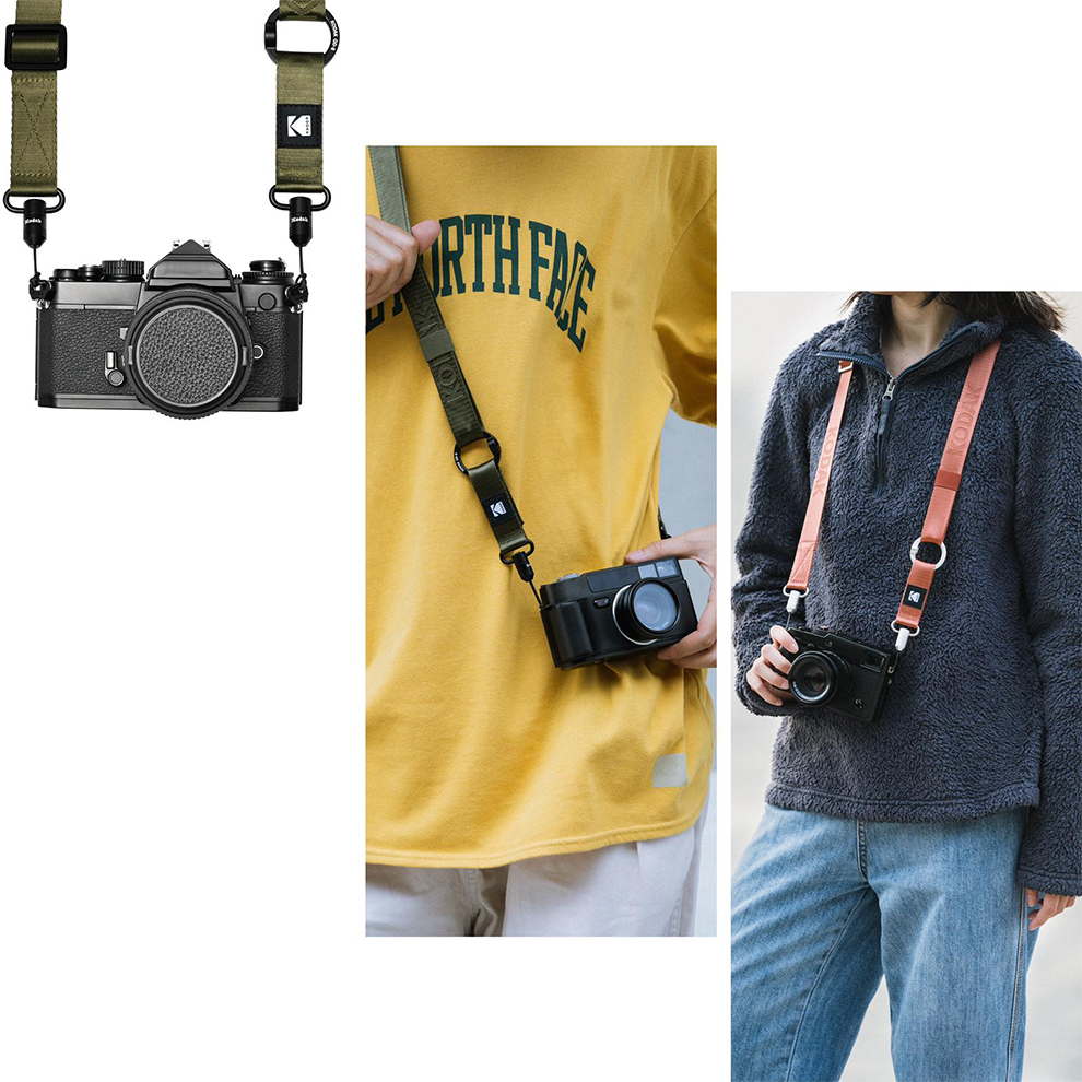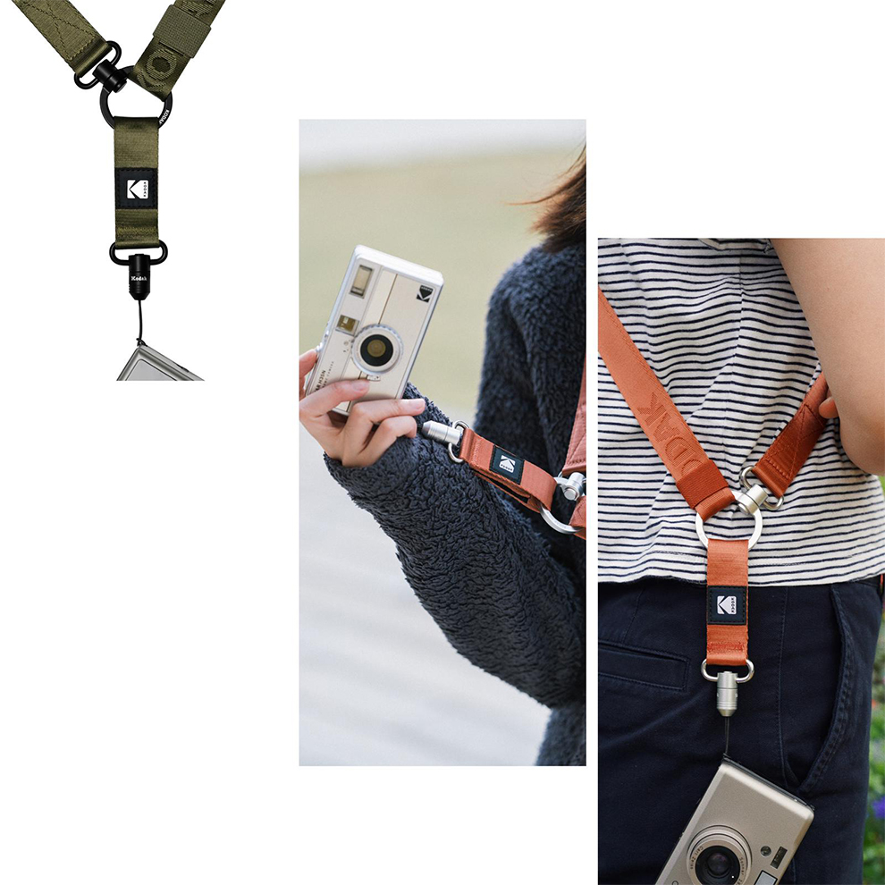 6款顏色背帶 自由搭配獨特O型環設計 可轉換斜背型式用料輕巧 強度十足、做工精細多種配戴方式、風格自由多變加入柯達經典元素 兼具時尚、實用性