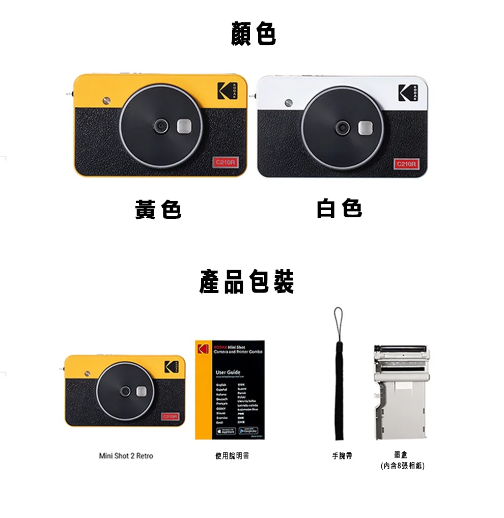 KODAK柯達MINI SHOT 2 C210R拍立得口袋相印機是一款設計精巧、功能多樣的便攜式相機和相印機結合的產品。