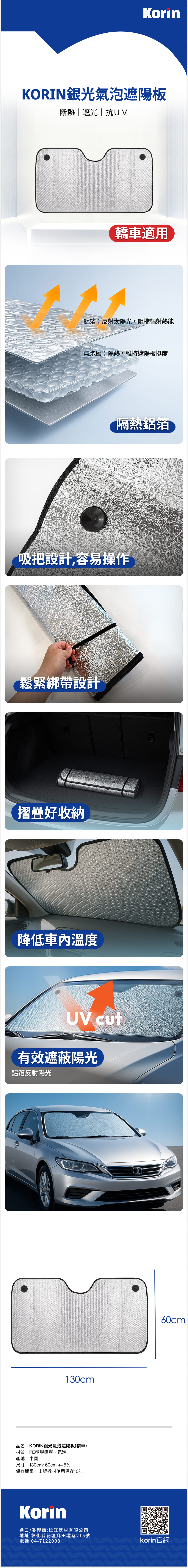 【汽車百貨】KORIN銀光氣泡遮陽板(轎車)