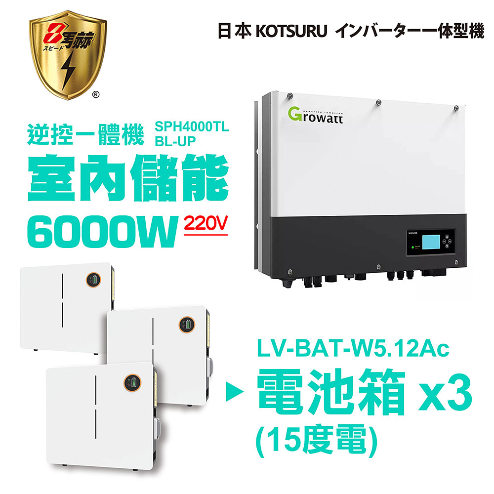 KOTSURU 8馬赫 第三代家用儲能逆變器(6000W) + 電池箱x3(15度電) 容量可擴充 施工另計現場估價