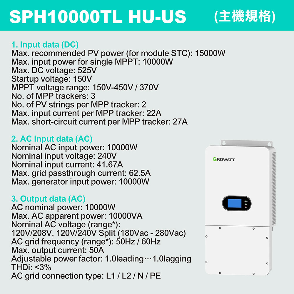 【一個主機10000W + 一個(5120Wh電池箱)(可增加電池箱)】