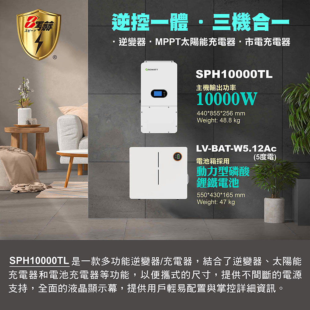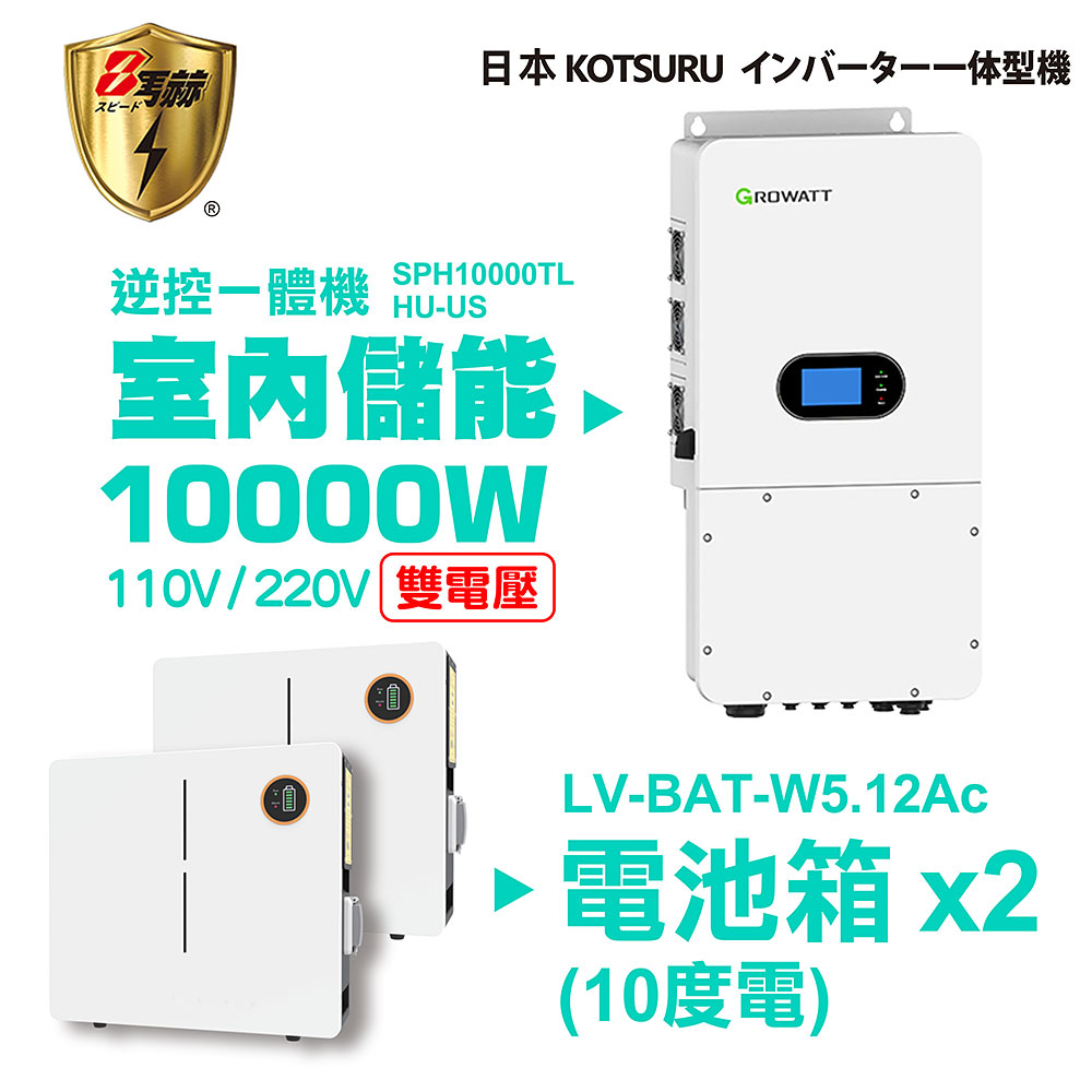 KOTSURU 8馬赫 第三代家用儲能逆變器(10000W) + 電池箱x1(5度電) 容量可擴充 施工另計現場估價