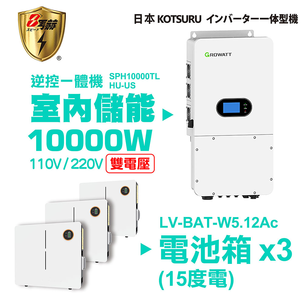 KOTSURU 8馬赫 第三代家用儲能逆變器(10000W) + 電池箱x3(15度電) 容量可擴充 施工另計現場估價