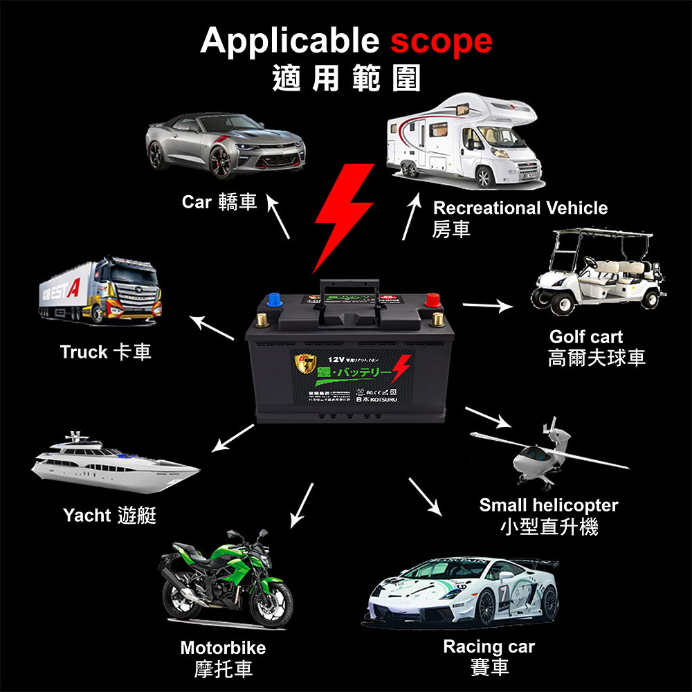 8馬赫汽車鉛轉鋰動力電瓶,生產組裝臺灣,ISO 9001廠,企業以綠能、減碳、永續、責任為目標,生產超高倍率電池,採用最新研發奈米高倍率電芯、能量密度高、重量最輕、電力強勁、啟動電流最強;容量大,使用時間長,為最強悍的綠色能源。