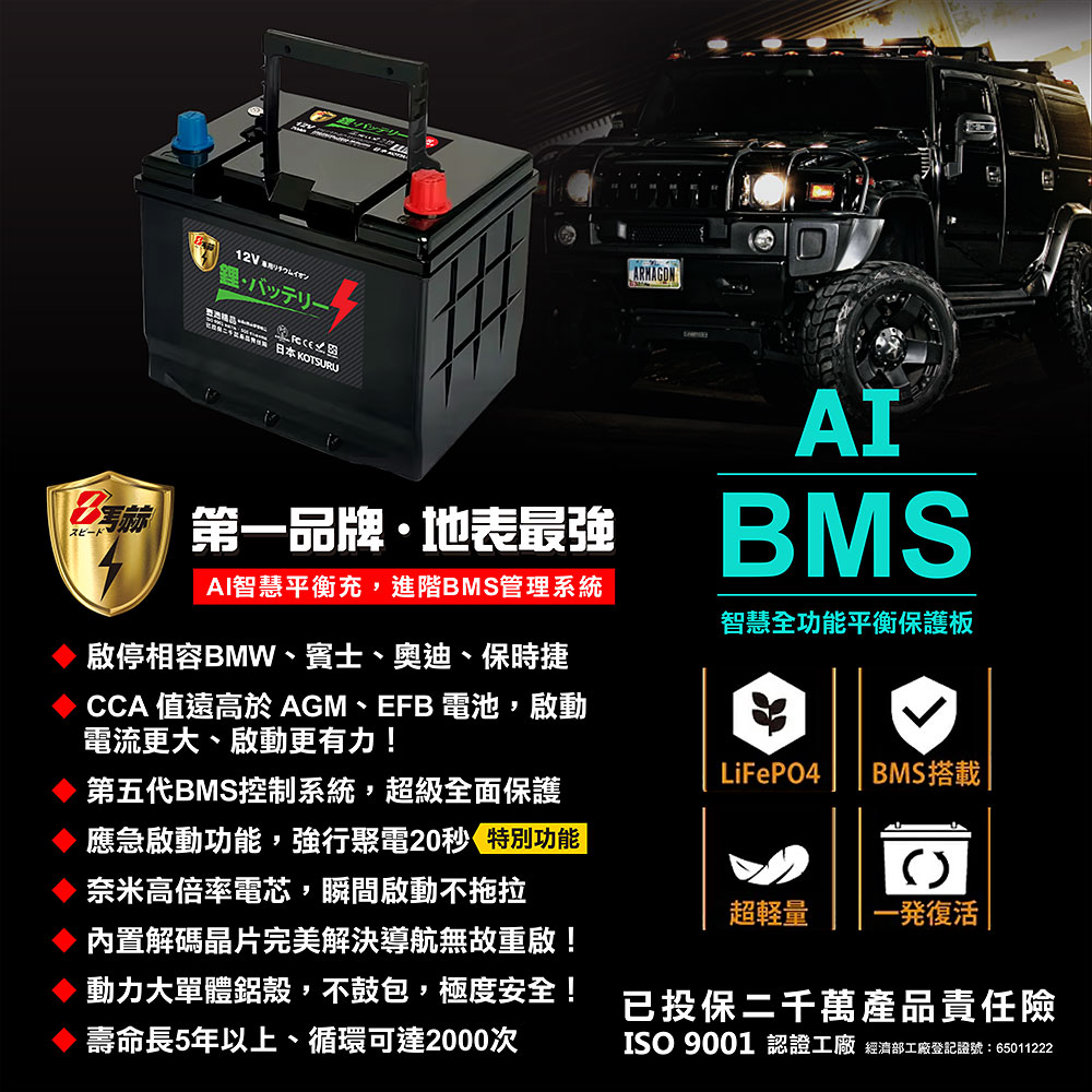 8馬赫汽車鉛轉鋰動力電瓶,生產組裝臺灣,ISO 9001廠,企業以綠能、減碳、永續、責任為目標,生產超高倍率電池,採用最新研發奈米高倍率電芯、能量密度高、重量最輕、電力強勁、啟動電流最強;容量大,使用時間長,為最強悍的綠色能源。