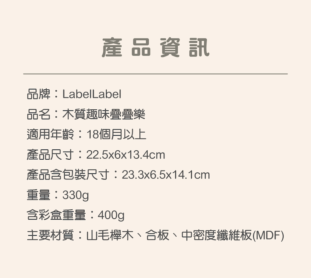 官方直營【Label Label】木質趣味疊疊樂-兩色可選