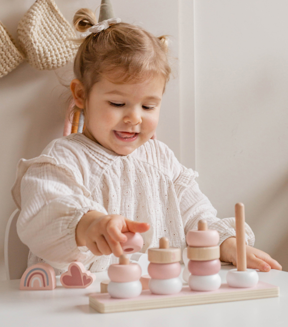 尺寸:22.5x6x13.4cm重量:330g材質:山毛櫸木、合板、中密度纖維板(MDF)產地:中國●繽紛可愛的套環,上面好像有什麼動物躲起來了?是一隻調皮的兔子!●10 個彩色套環、4 個編號套環、還有4 個可愛造型的積木●將不同顏色套環堆疊一列列,訓練平衡●更進一階,依照圓環積木上的數字堆疊,訓練孩子數數●採用FSC™認證木質製成,外觀顏色使用兒童友善的水性顏料●學習主題:眼部協調/手部小肌肉/形狀/數數/堆疊/邏輯