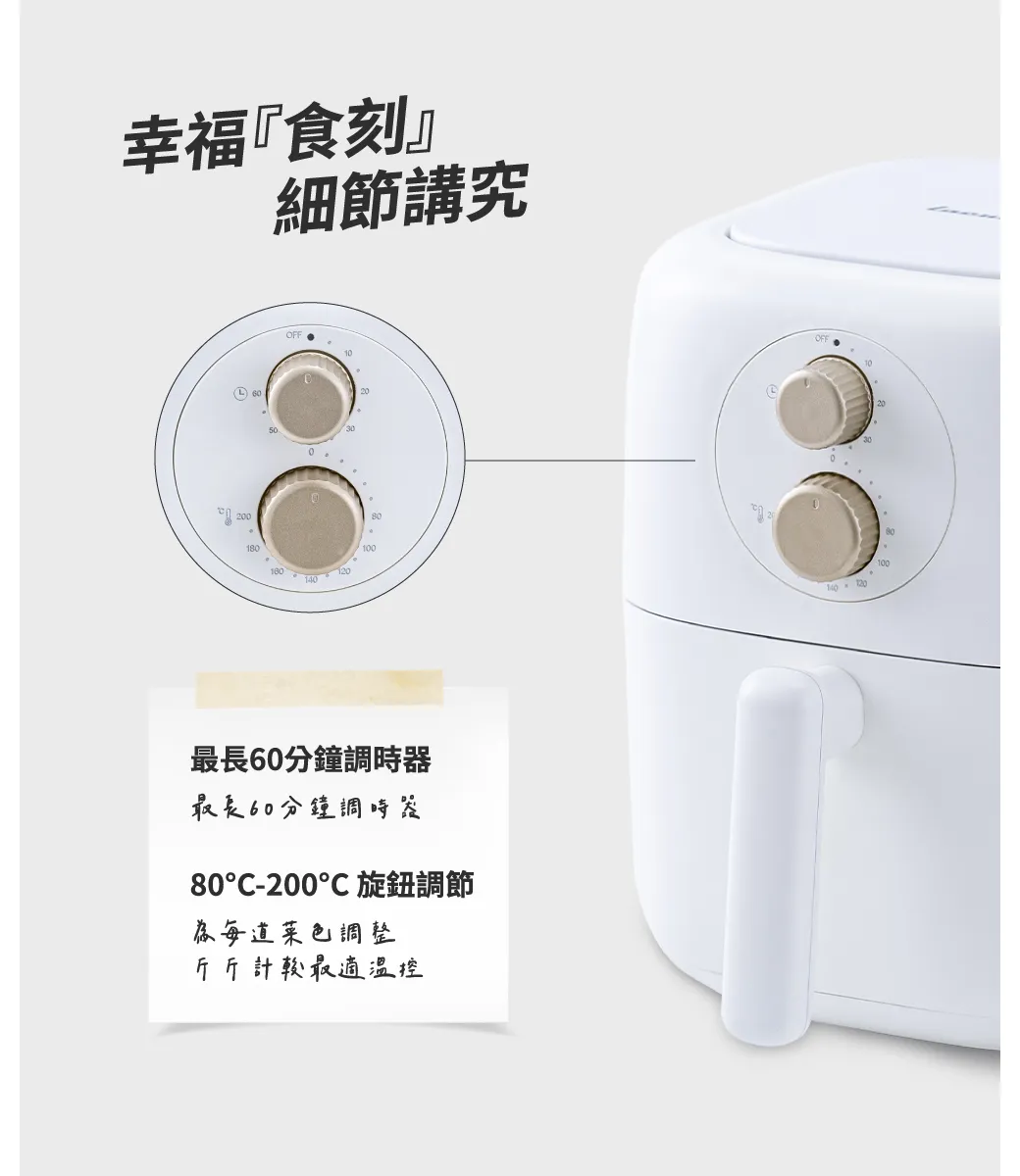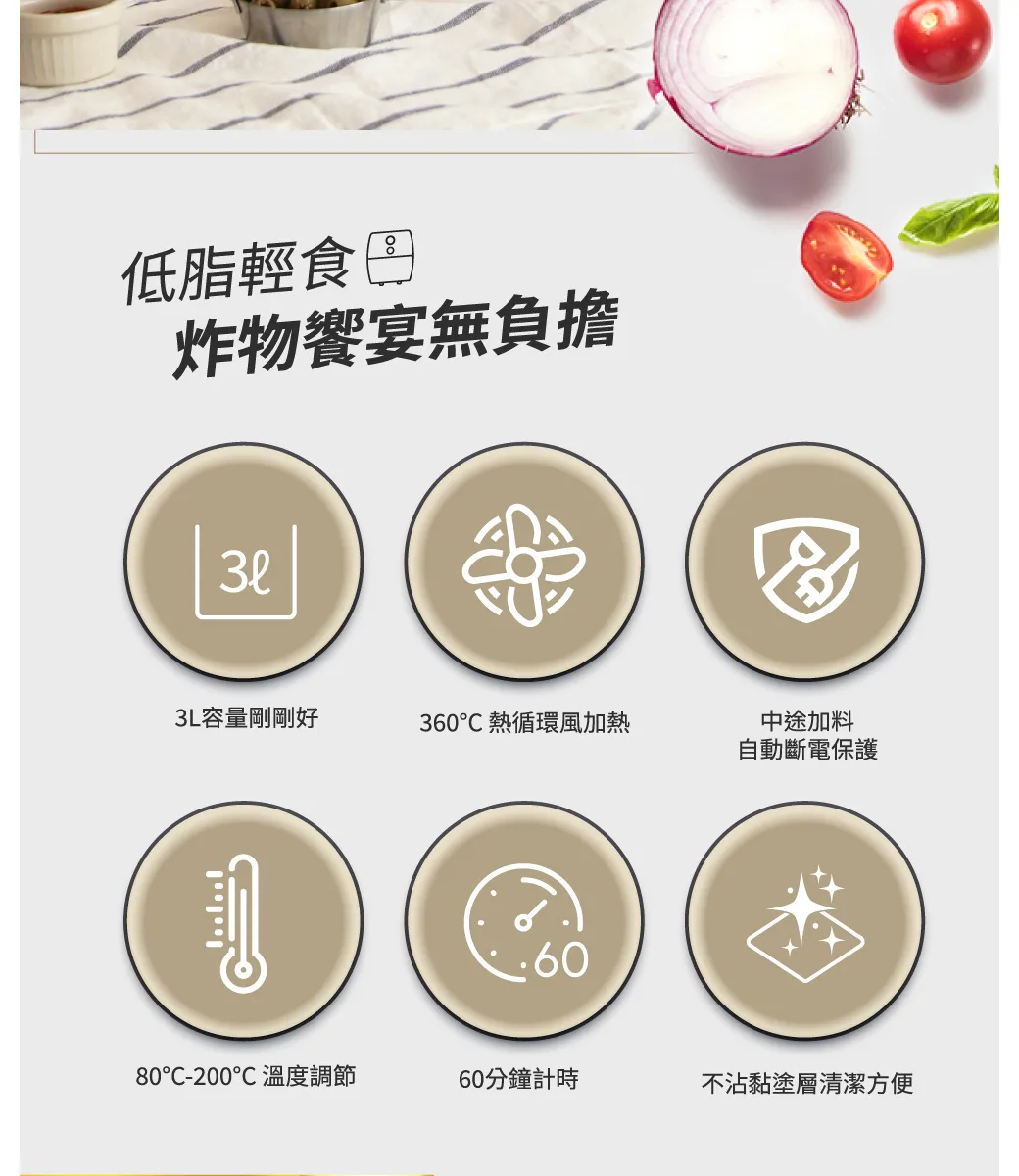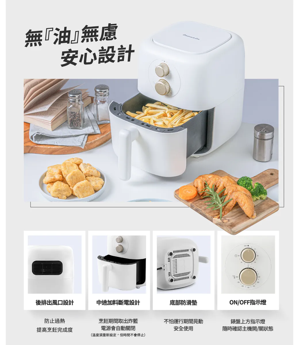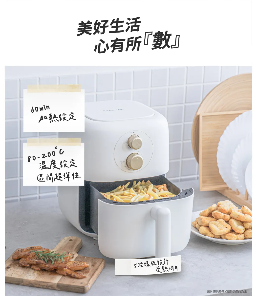 減少油脂 不減美味,健康新主張360度高速熱風循環.無需手動翻面3L黃金容量.不多不少剛剛好.型 號:LCZ0101WT.品 名:Lacuzin 智慧萬用氣炸鍋.顏 色:珍珠白.商品尺寸:約 20.5 x 28 x 28.5 cm.商品重量:約 3.13 kg.電線長度:約 80 cm (不含接頭).額定電壓:AC110V.額定頻率:60Hz.額定功率:1200W.容 量:3L.產品材質:聚乙烯(pp)、聚碳酸酯(pc)、苯乙烯(abs).包裝內含:主機 x1、炸籃 x1.商檢字號:R3A903 RoHS.產 地:中國