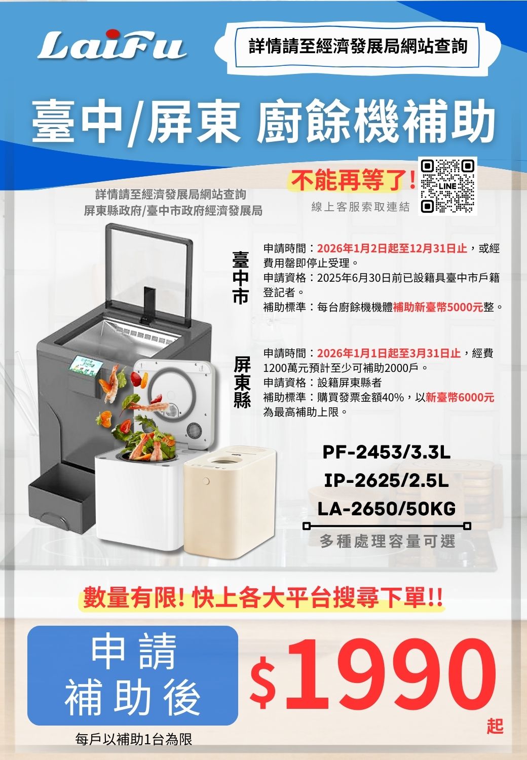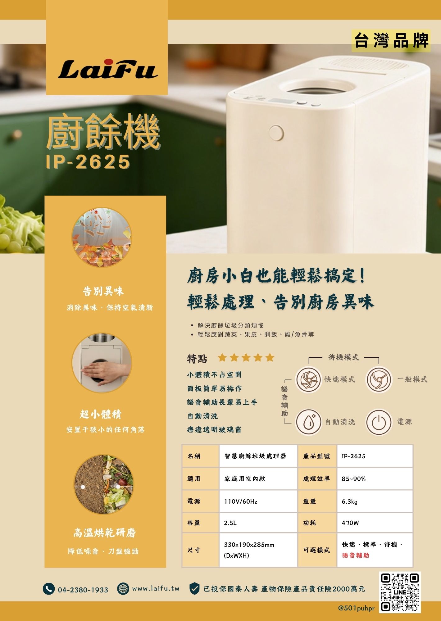 【預購2月出貨】LAIFU 徠富 IP-2625 2.5L 家用廚餘機 廚餘乾燥機 保固1年 台灣品牌