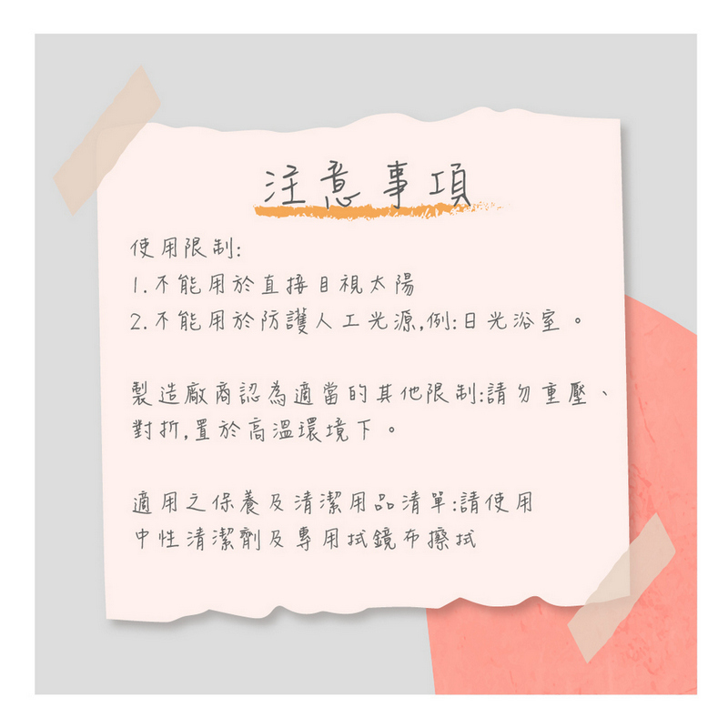 TR90超彈性記憶鏡框PC強化鏡片防刮耐撞擊多層鍍膜鏡片+防霧100%抗UV自由調整鼻墊腳尾無螺絲結構設計鏡框上排氣孔設計可以裝近視內掛鏡