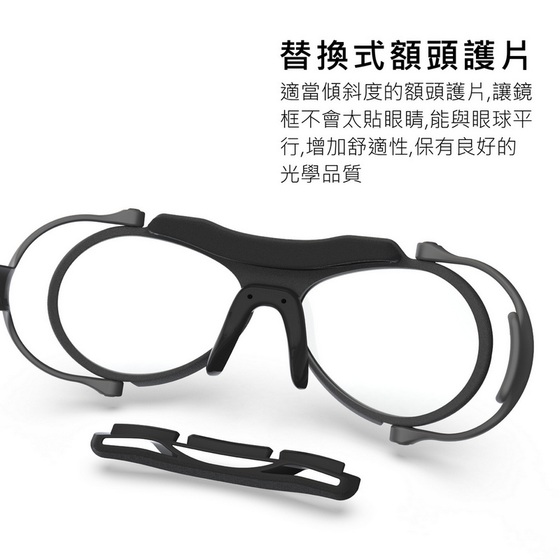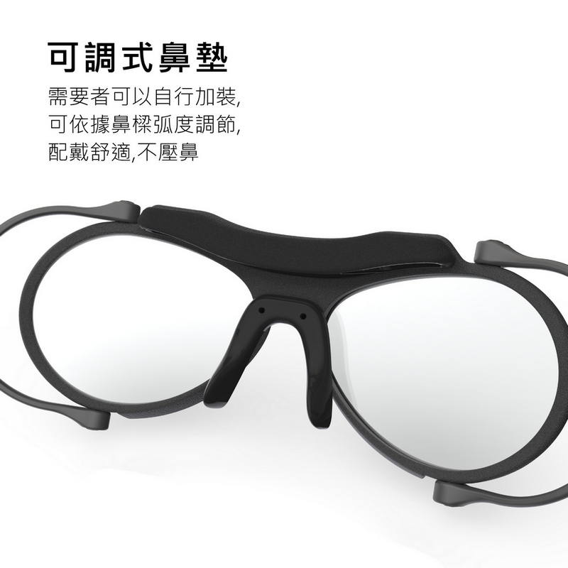 可裝配度數鏡片可戴在軍警空氣呼吸器面罩/防毒/漆彈面罩/雪鏡/安全帽/防護面罩密合性高,不易滑落側扣易拆,可以更換不同材質的織帶所有的配件都可以輕易拆下,更換新的