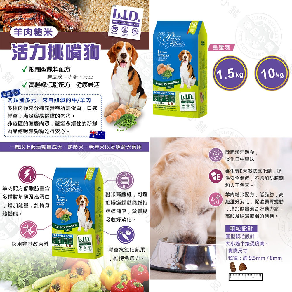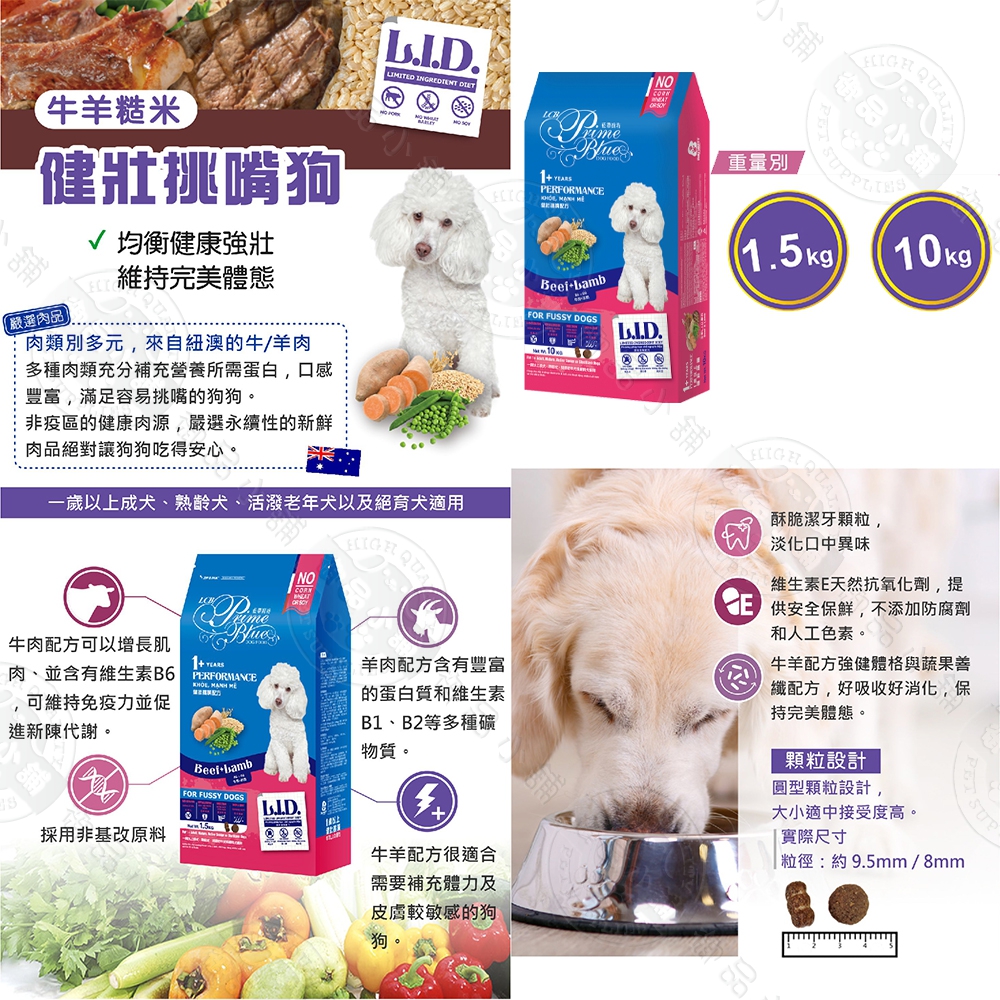 LCB藍帶廚坊狗糧 L.I.D.挑嘴系列 牛羊配方10kg 照顧腸道和體內外環保