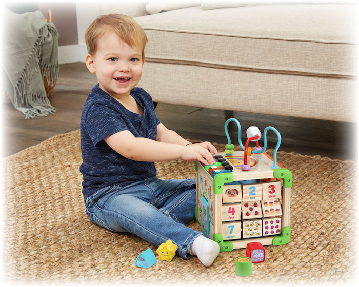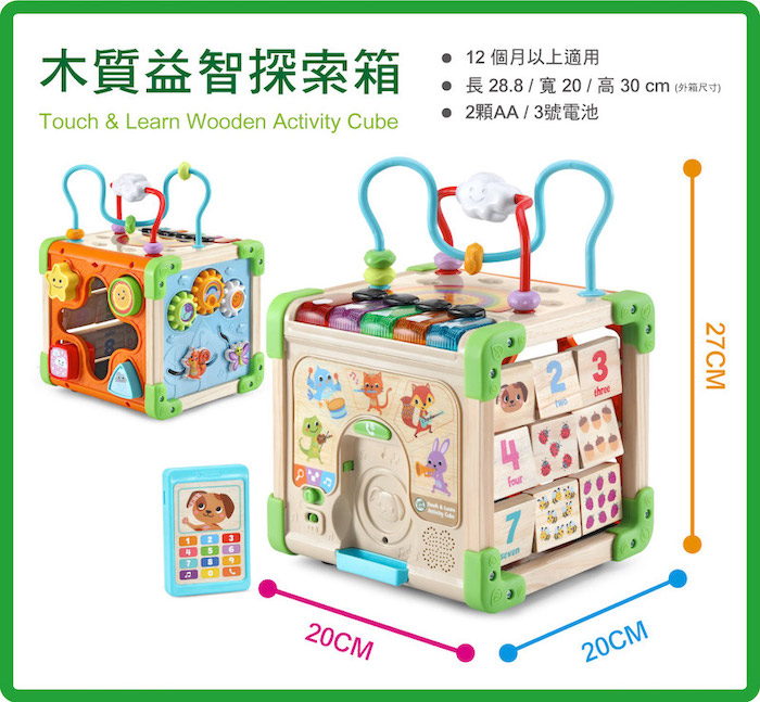 ●觸摸動物會有英文單字發音、模擬動物的叫聲、還能聽牠們演奏樂器●按壓上方的鋼琴鍵盤,會演奏出不同美妙的英文歌曲●一起來數數-翻轉九種雙面木塊,一面有數字、另一面有可愛的動物和數量●三種齒輪轉盤讓孩子達到手部運動同時感到有趣。蝴蝶和松鼠沿著路徑移動,讓他們成為好朋友●中間區域可自由放入任何形狀積木,或是挑戰把不同形狀積木放在對應的位置●多樣化探索主題,增加翻轉與擺放動作,幫助孩子的小肌肉群有效的成長與發展。●多元學習主題-動物/顏色/音樂/形狀,培養孩子認知、視覺、聽覺與觸覺發育