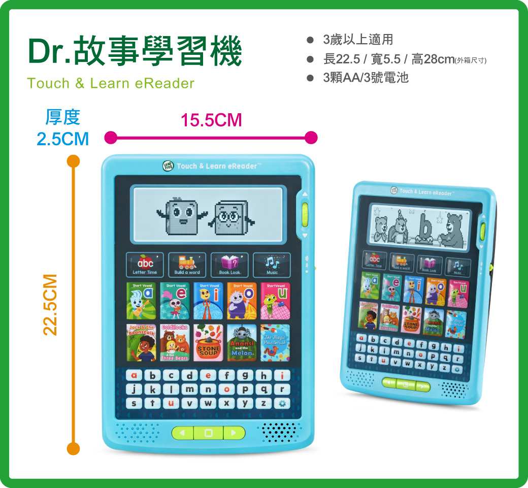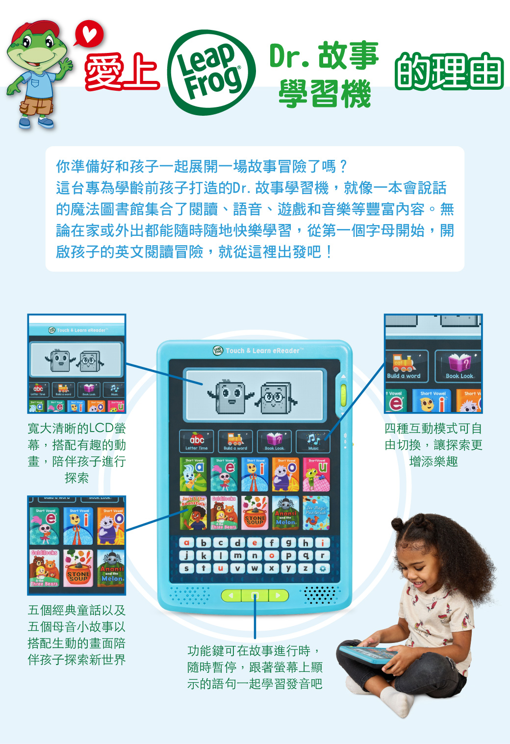 Dr.故事學習機,結合五大經典童話故事、五種元音(母音)互動,