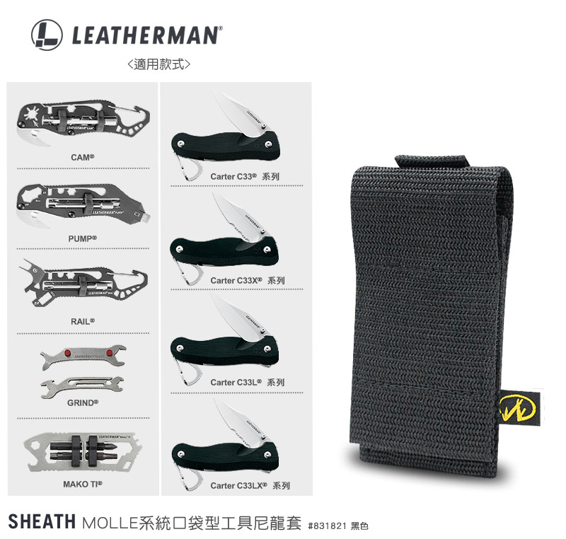 LEATHERMAN 公司貨 MOLLE 系統口袋型工具 尼龍套 /831821 黑色