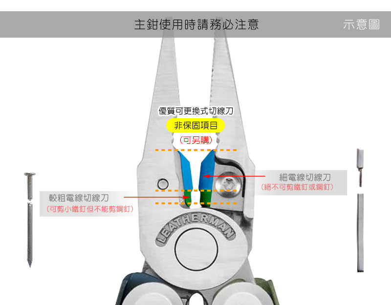 【保固注意事項】安全哨&打火棒、鑽石塗層磨刀器、可更換式切線刀屬於可更換式零件,原廠不列入保固範圍,若發生損壞及遺失需另購買。