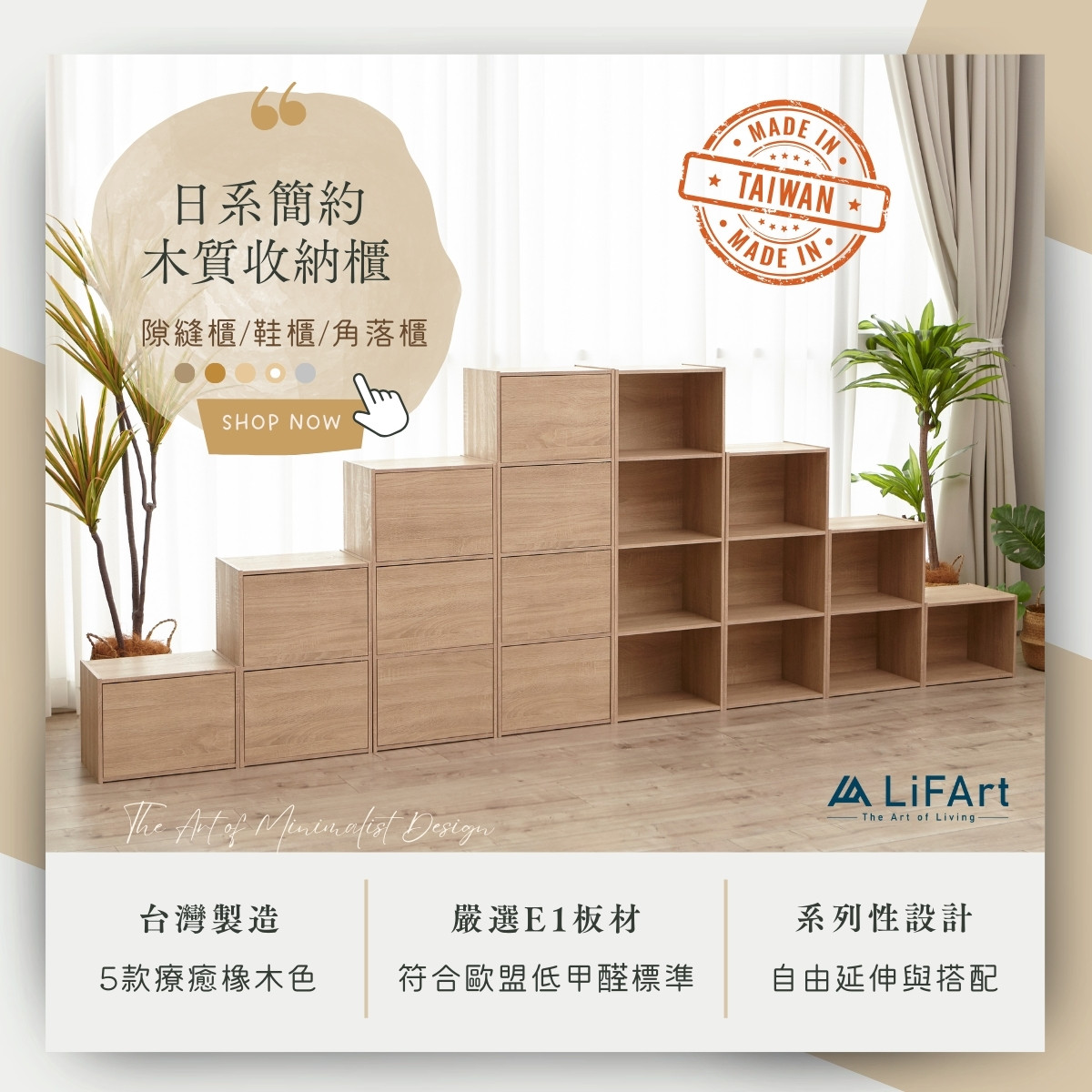 【LiFArt】MIT日系簡約三層附門收納櫃-純白橡木色