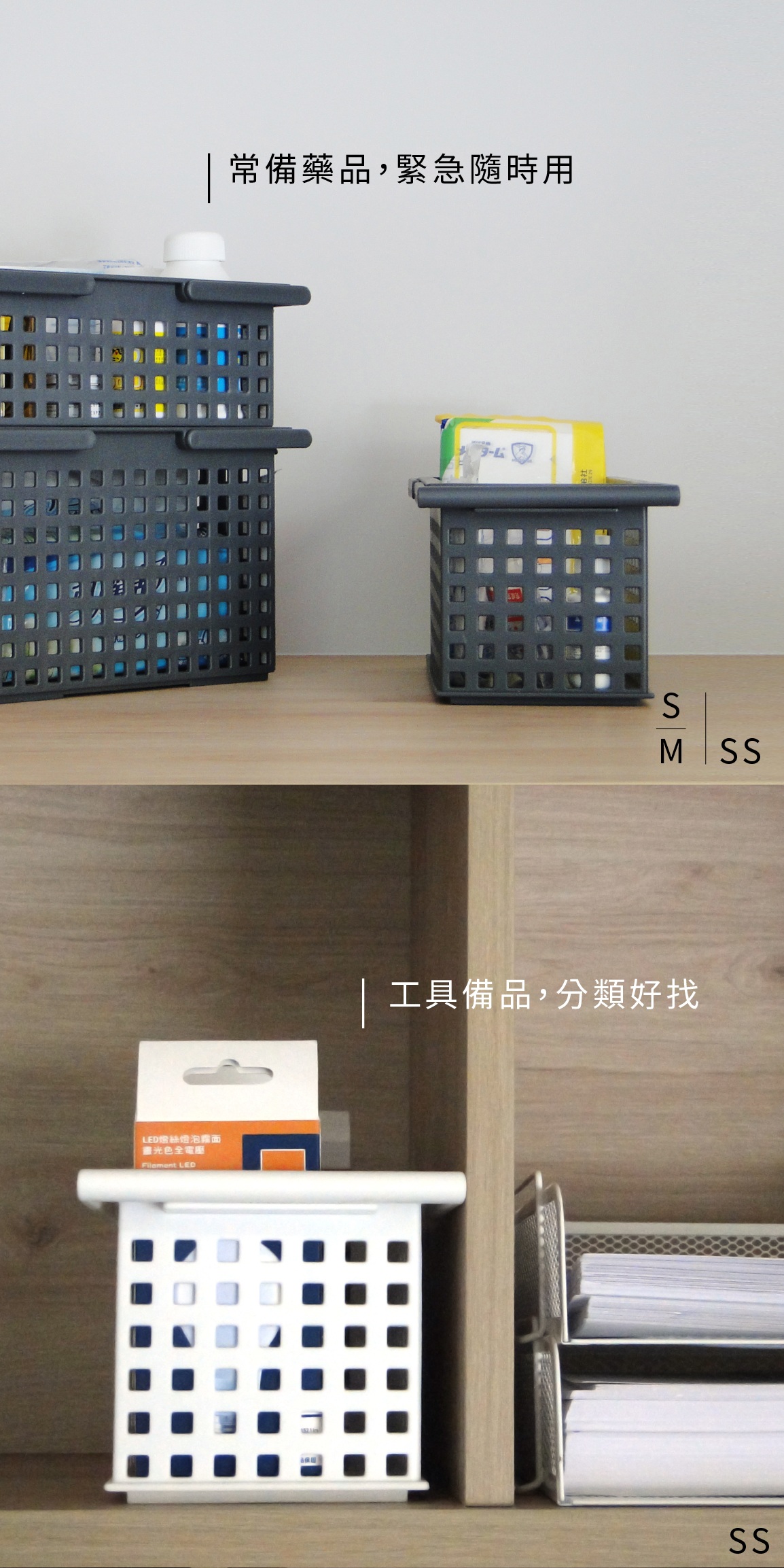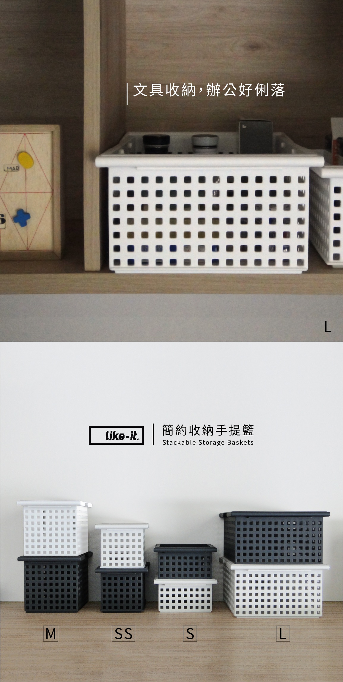 【 此賣場為 2個SS+1個L 三入組 】好收納 可手提 輕巧 可堆疊您絕對不能錯過的日系簡約美型 提籃式桌面收納籃SS、S、M、L 四種此尺寸 隨意搭配使用同樣高度排一起還可當分類格使用放在衣櫃內也可以收納 襪子、內衣、內褲 等小物擁有手提把,提著就可以任意移動,因此在野外露營、野餐也都非常便利