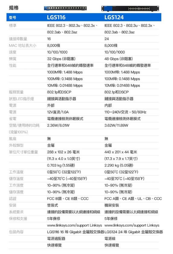 昌運監視器 Linksys LGS116-AP 16埠 Gigabit 超高速乙太網路交換器(鐵殼)綠色環保節能 QOS
