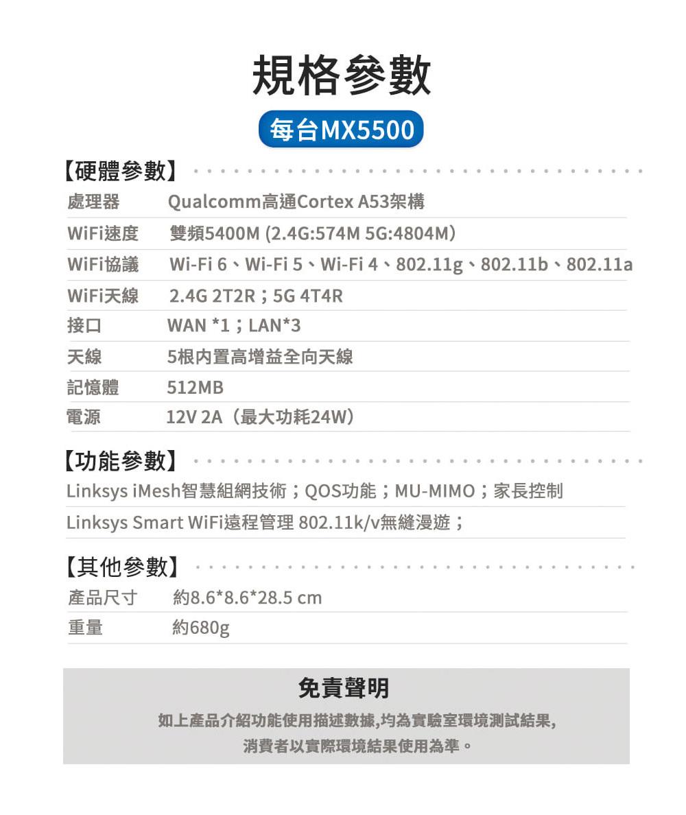 昌運監視器Linksys MX5502-AH AX5400 Velop Mesh WiFi 6雙頻網狀路由器三入(3入)