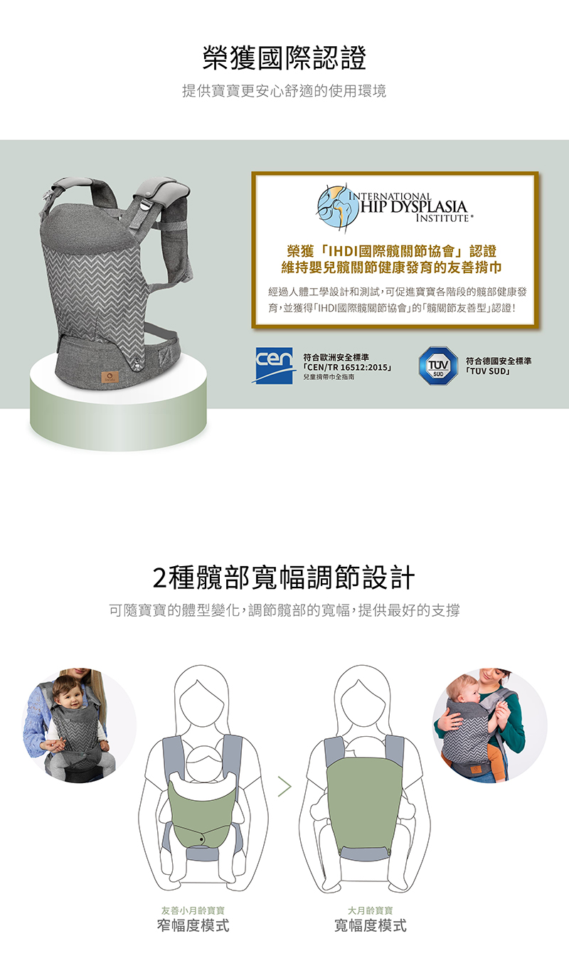 加厚型加寬版腰帶/榮獲國際髖關節協會IHDI認證/嬰兒髖關節健康發育的友善揹巾