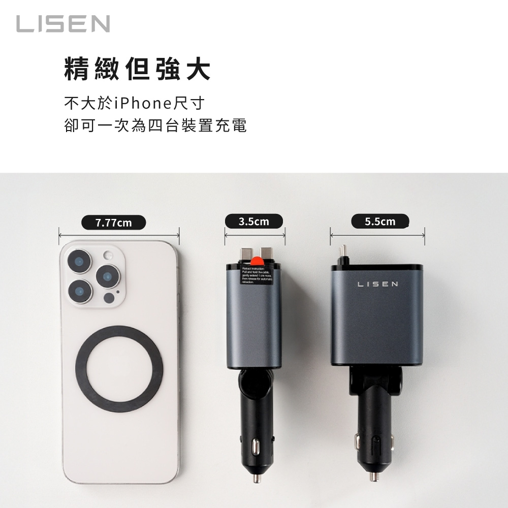【LISEN】B104伸縮線車載充電器 2E7130 車充 車用充電器 點菸器 點煙器