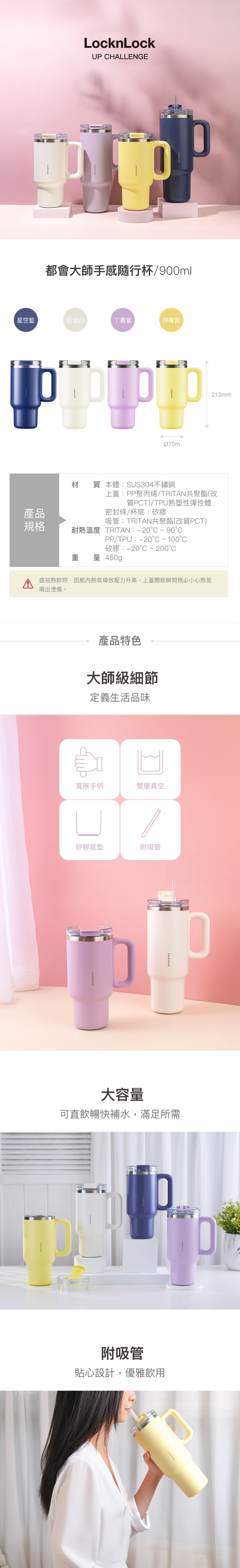 樂扣都會大師手感隨行杯900ml-奶泡白