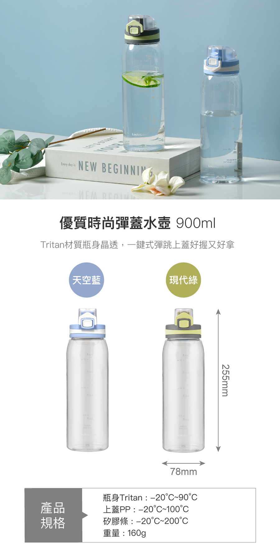 樂扣優質時尚彈蓋水壺900ml-Tritan藍